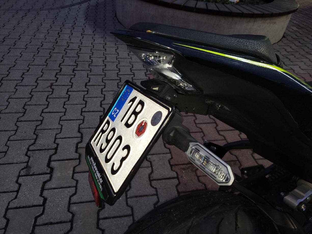 Namátkou, Ohlins přední kartridže, mřížka na chladič, padací kryty motoru GPRacing, nový originální tankpad Kawasaki, přešité gelové sedlo s alcantrovým potahem, luxus posez, quickshifter nahoru od GIPRO Helltecu, rolky v kyvce na stojan, tuningový držák SPZ s odrazkami, vše dle vyhlášky, nová přední i zadní guma Dunlop.